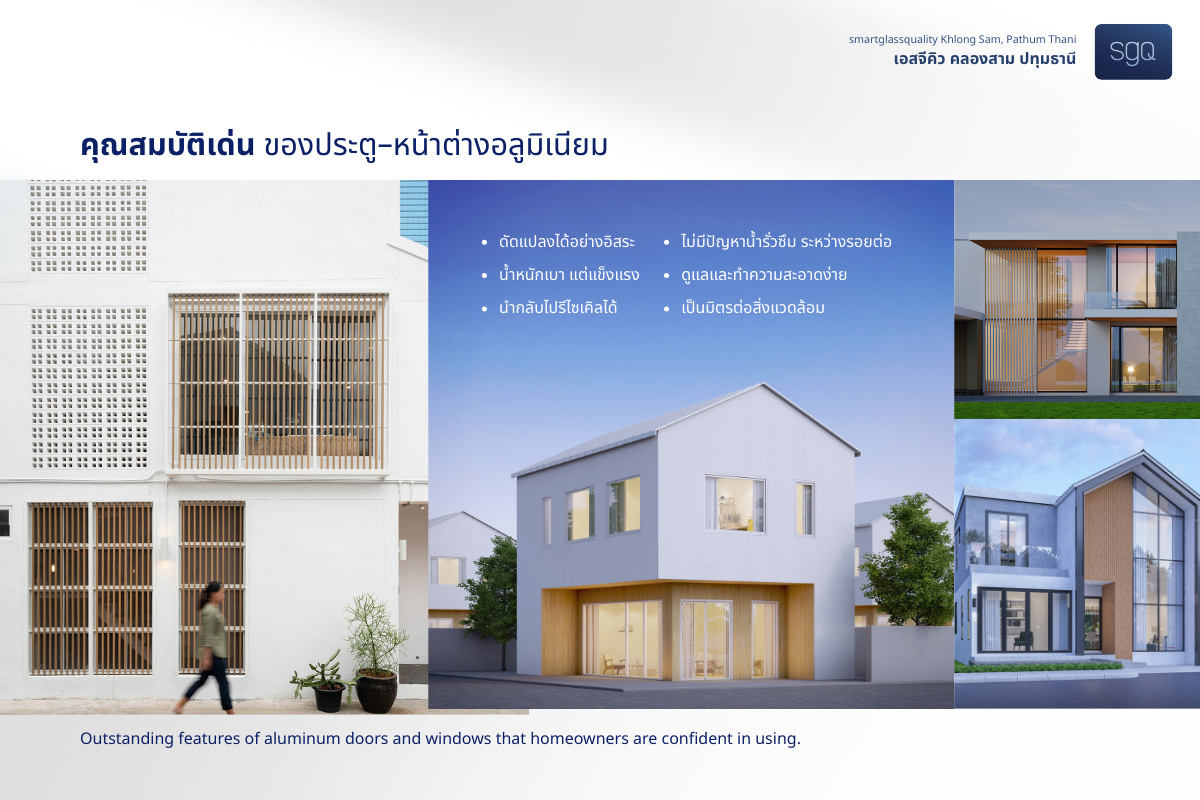 ที่ เอสจีคิว คลองสาม มีครบทั้งสินค้าคุณภาพและทีมช่างผู้เชี่ยวชาญด้านระบบประตู–หน้าต่างอลูมิเนียมโดยเฉพาะ