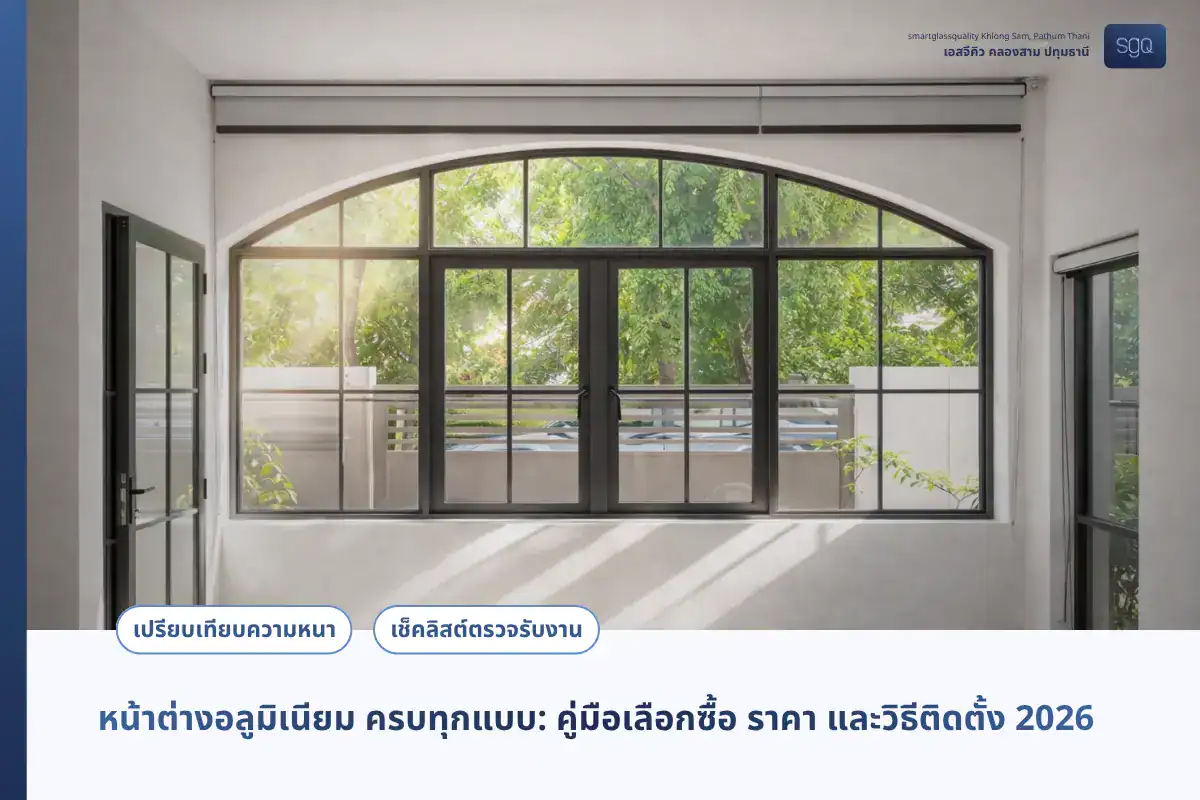 บทความนี้รวบรวมข้อมูลจากประสบการณ์ทีมช่าง SGQ ที่ผ่านงานติดตั้งหน้าต่างอลูมิเนียมมาแล้วหลายโครงการในเขตปทุมธานีและกรุงเทพฯ โดยเราจะพาคุณเปรียบเทียบทุกประเภทของหน้าต่างอลูมิเนียม พร้อมตารางราคา 2026 และเช็คลิสต์ตรวจรับงานที่ช่างมืออาชีพใช้จริง