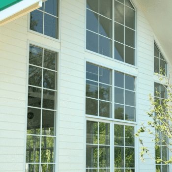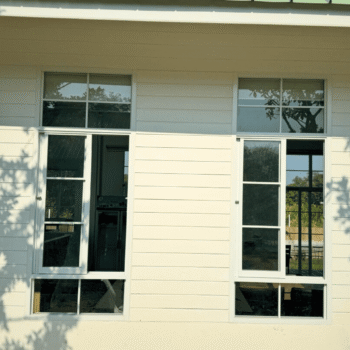 SGQ 为极简风咖啡馆安装白色铝合金门窗系统,高挑通透的门窗设计使自然光充分进入室内。白色铝框营造干净明亮的视觉效果,与双坡屋顶建筑风格完美融合。所有门窗皆以精细工艺组装,结构稳固,操作顺畅,满足日常使用的所有需求。